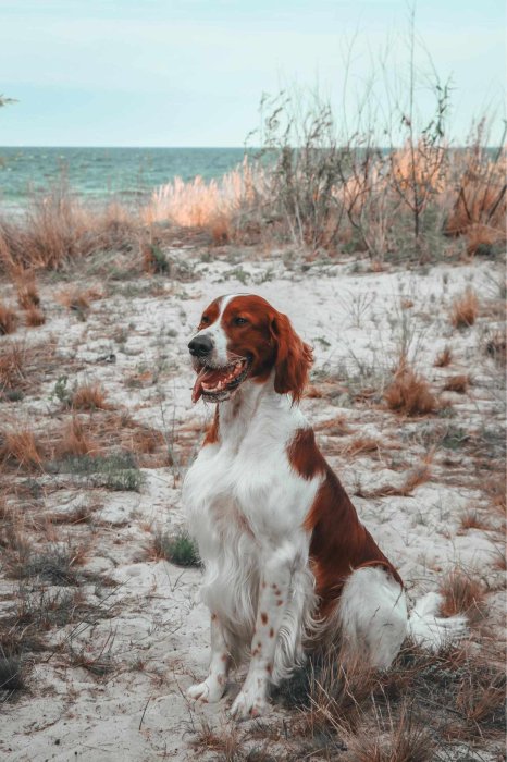 Zadám štěňata irských červenobílých setrů s PP . Vhodná pro myslivost , k prezentaci na zkouškách , soutěžích , výstavách i jako společníci .