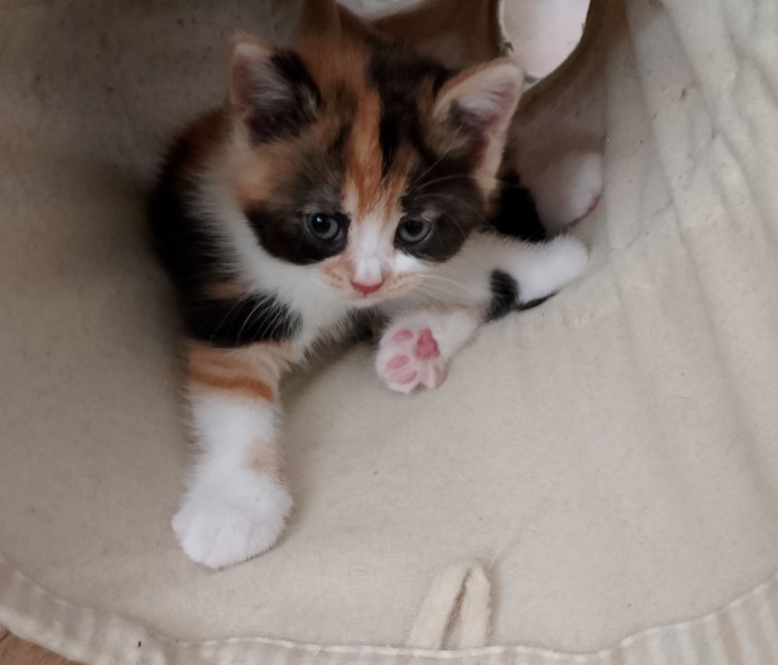 Prodám britskou tricolor kočičku , odčervená, vymazlená, naučená na kočičí záchod.Bez PP.Odběr 5.červenve .