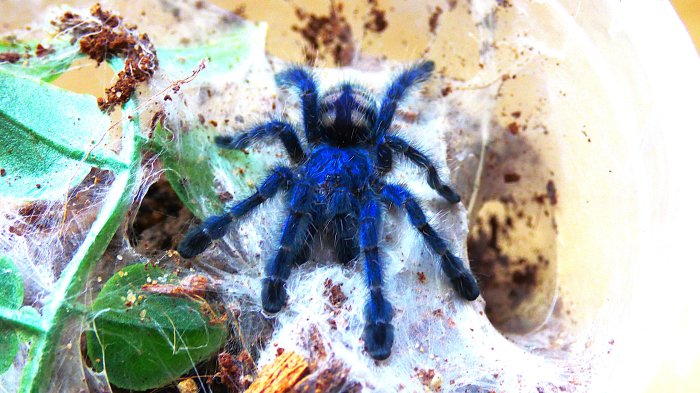 Brachypelma boehmei, Poecilotheria metalica, regalis, fasciata, vittata