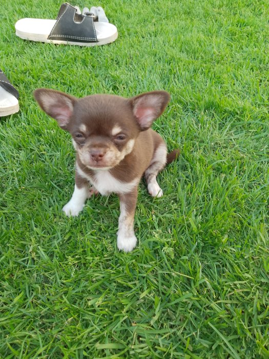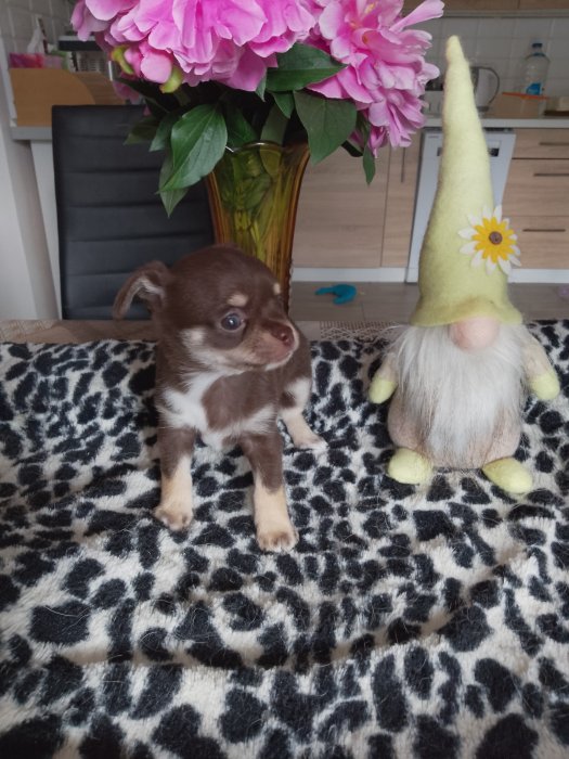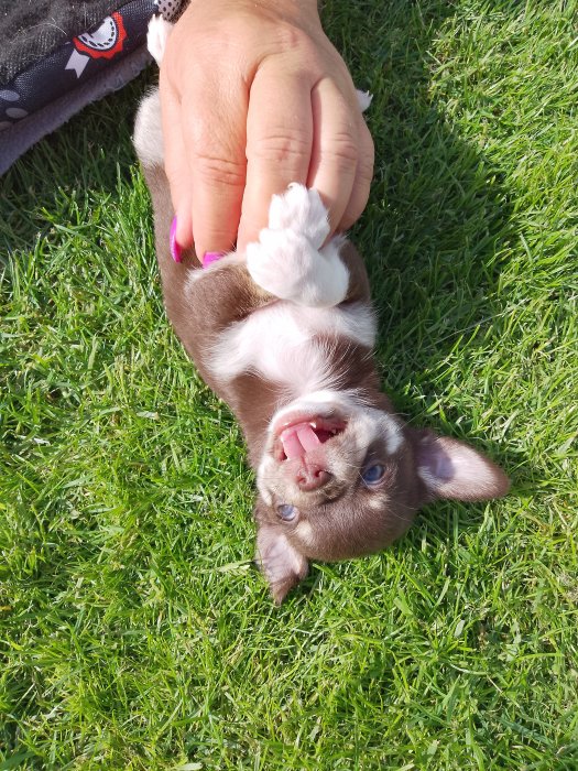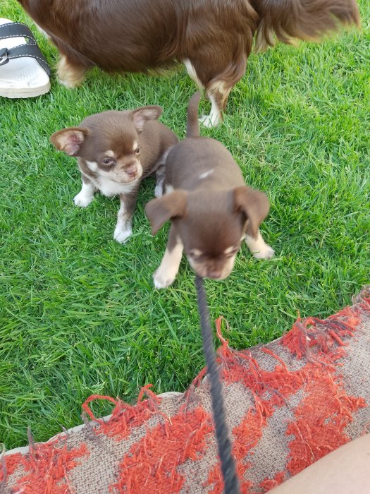 Prodám štěňata čivava krátkosrstá čokoládové zbarvení bez PP narozený 2.5.2025 kluky k odběru cca za 14 dnů očkovaný odčerveny čipovaný oba rodiče lze vidět máme je doma prosím volejte jen vážný zájemci záleží nám aby šla do milujících rodin cena 12 000 tisíc telefon 722547840