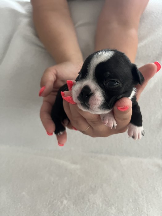 Dobrý den naše chovatelská stanice Energie Boston má štěňátka k rezervaci po Kira Victortoria Diamondstar tatinek Collin Černá Kněžna. Oba rodiče vyšetřený na pately 0/0.Máme krásné kluky k rezervaci 🥰. Štěňátka budou k odběru začátkem srpna. Z domova budou odcházet s plným batůžkem do začátku.