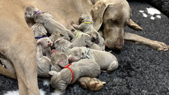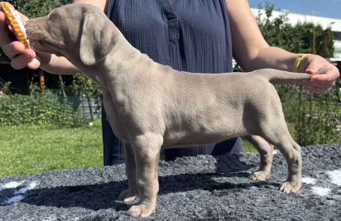 CHS La Vita Eterna zadá štěňátka výmarského ohaře krátkosrstého s PP z velmi nadějného spojení, odběr v polovině července 2025, popř. dle domluvy.