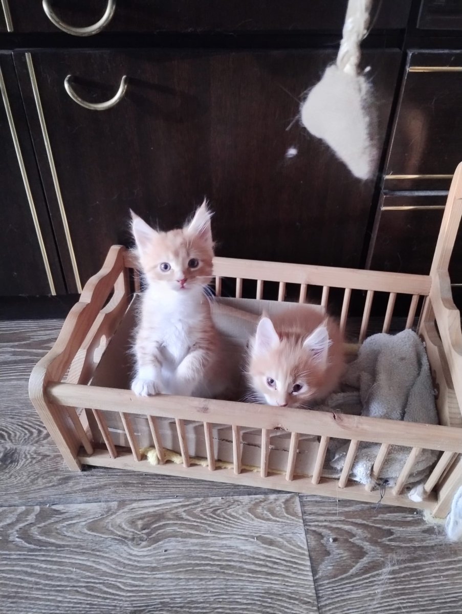 Dobrý den,narodilo se nám 6 koťat Mainské mývalí.5 slečen,jeden kluk.Zatim věk 6 týdnů takže k novým hodným milujícím majitelům pujdou začátkem srpna.Budou očkované a odčervené.Zvyklá na psa.Jsou bez PP.