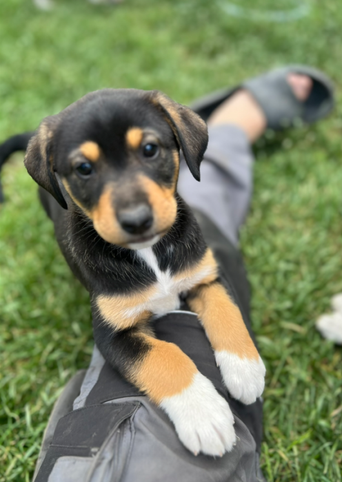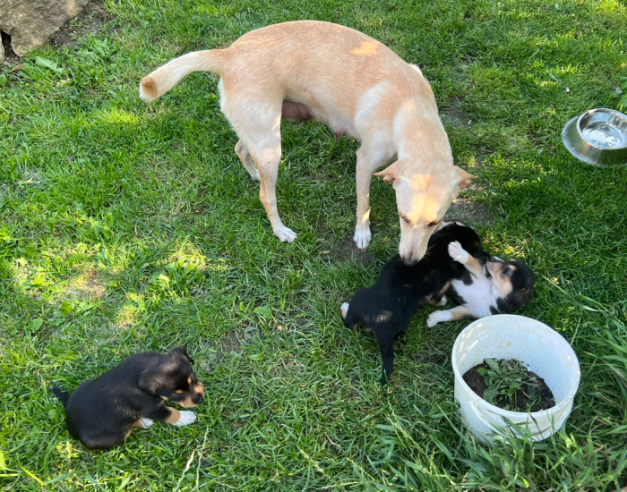 Přenecháme štěňata - matka kříženec, středního vzrůstu. otec čistokrevný australský ovčák, narozené 11. 5. 2025, dva kluky a tři holčičky. Jsou zdravá, vitální, a učenlivá. Vhodná pro aktivní život. Dá se předpokládat, že budou menšího až středního vzrůstu. Budou mít středně dlouhou srst, takže budou schopná spát venku.
