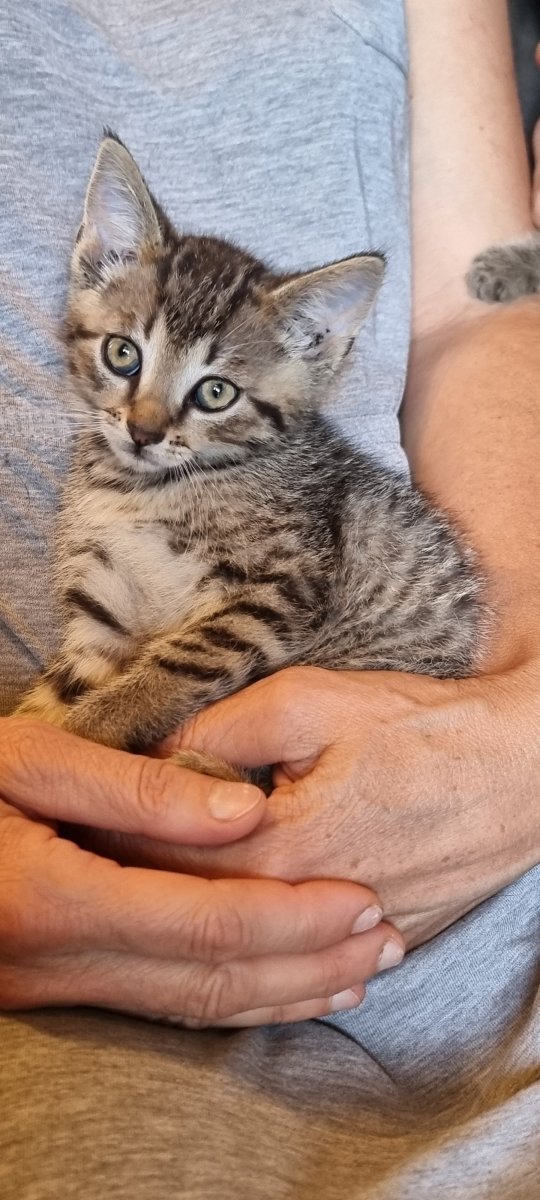 Porthos, kocourek, narozen cca 8/2025, kastrace v dospělosti je podmínkou adopce. Dne 19.11.2025 někdo nechal v krabici tři koťata (kluci) u Zoobutiku ve Schwaigerově...