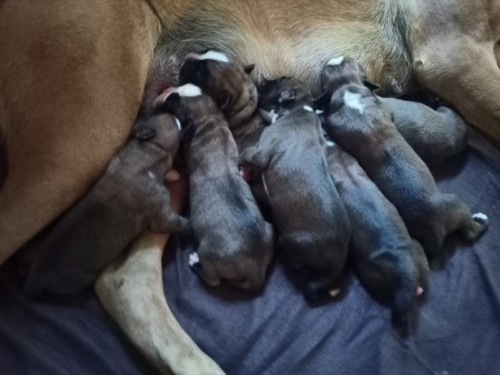 Štěňátka se narodila 4.7.2025. Celkem 5 holčiček a 2 kluci. Štěňátka jsou naprosto zdravá, první prohlídka u veterináře byla hned 5.7.2025.
