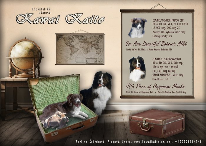 Chs Kawai Kaito nabízí poslední nezadaná štěňátka, po velmi kontaktních rodičích , bez zlozvyků, s velmi dobrými zdravotními vyšetřeními Tento vrh je vhodný pro začínající obdivovatele borderkolií. Nadstandardní chovatelský servis, možnost hlídání v době dovolených. Těšíme se na vaši návštěvu. Cena od 20 000Kč