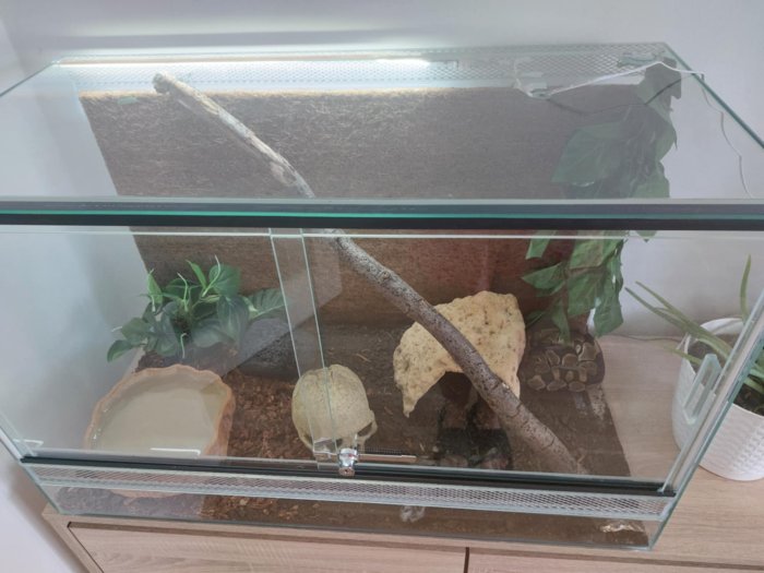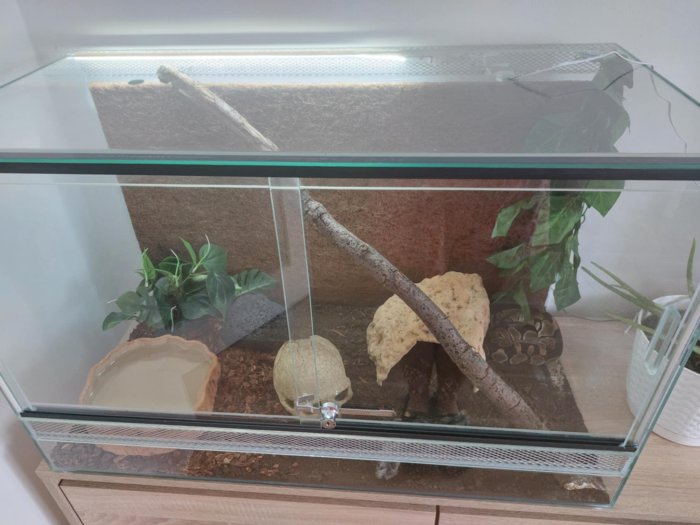 Prodám 2 roky starou krajtu královskou (klasické zbarvení) i s veškerým vybavením - terárium 80 x 40 cm se zámkem, vyhřívací podložkou, úkryty, světlem a časovačem, miskou na vodu, krmicím boxem... Krajta je zvyklá na ruku, klidná, bezproblémová, má krásné svleky. Více info e-mailem. Cena dohodou.