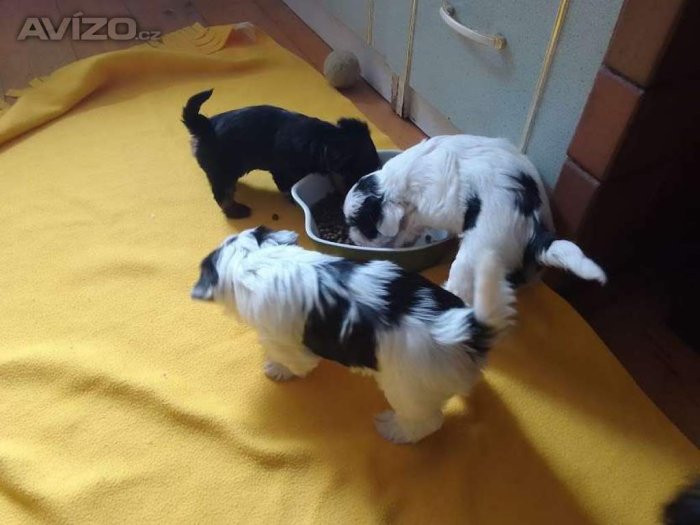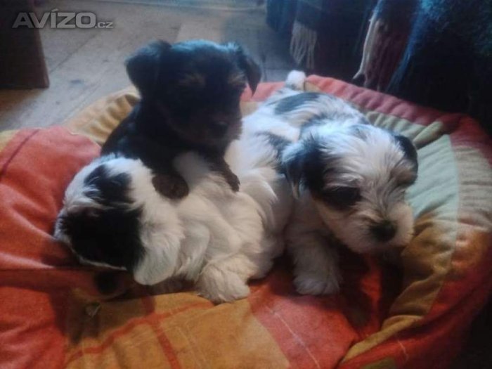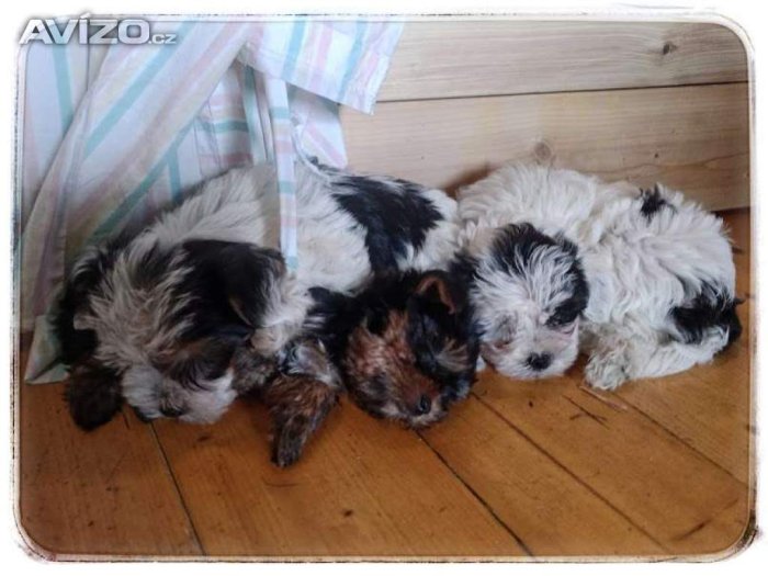Biewer Yorkshire Terrier štěňátka bez PP - tři bratři, narozeni 22. května 2025. Jsou očkovaní, odčervení, čipovaní, prohlédnuti veterinárním lékařem. Vychováváme je v domácnosti s dalšími zvířaty v klidném prostředí, jsou vedeni konat potřeby na podložku. Temperamentní rodiče se všemi znaky biewer. Prohlídka štěňat a rodičů u nás doma je možná po domluvě kdykoliv. S předáním pejsků je kupní smlouva, očkovací průkaz a počáteční dávka obvyklého krmiva samozřejmostí.