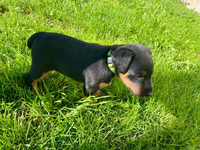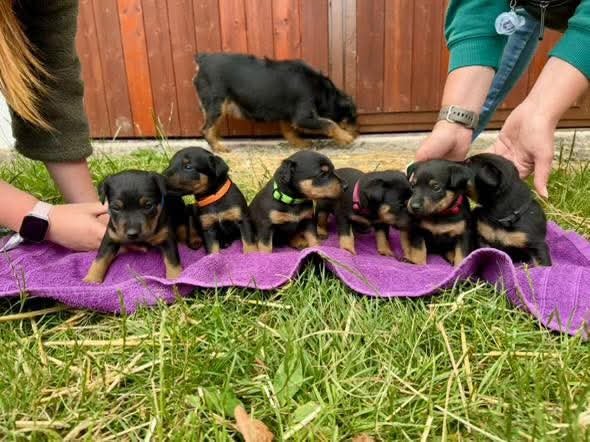 Prodám štěňata z chovatelské stanice z Trnkového háje, narozena 15.6.2025 (4 psi, 1 fena). Barva černá s pálením. Po lovecky vedených rodičích. Štěňata v době odběru budou již očkovaná, odčervená a opatřena čipem. K odběru budou od 15. srpna.