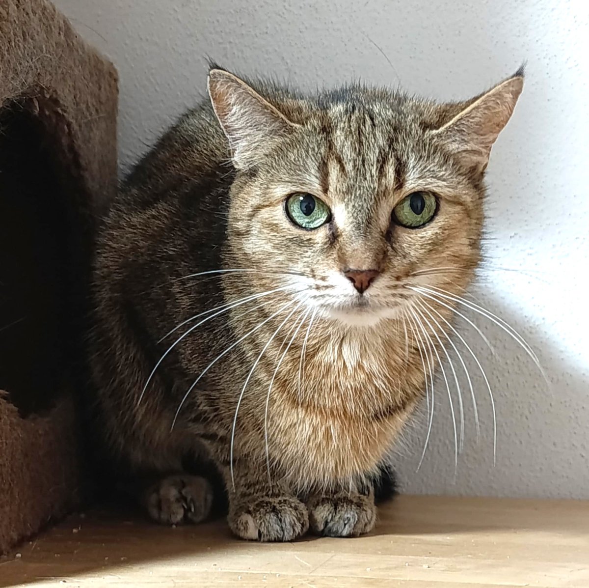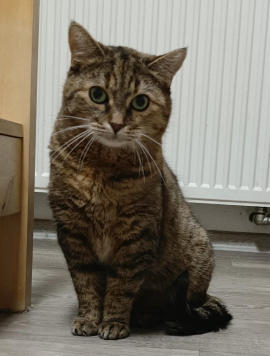 Kočička byla při příjmu velice vyděšená, jakýkoli náznak kontaktu odmítala a reagovala agresivně. Dlouho (3 měsíce) jí trvalo najít cestu zpět k lidem, ale již se nám otírá o nohy a nechá se hladit a dokonce nám již věří natolik, že ani podání tabletky na odčervení není problém. S ostatními kočičkami je v pohodě. Je čistotná.