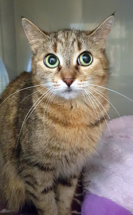 Edmunda, kočička, cca 8 měsíců (ev. číslo 2025/11/02), KASTROVANÁ, test FIV/FeLV negativní, č. mikročipu ............... 3 dospělé kočičky, 4 odrostlá koťata...