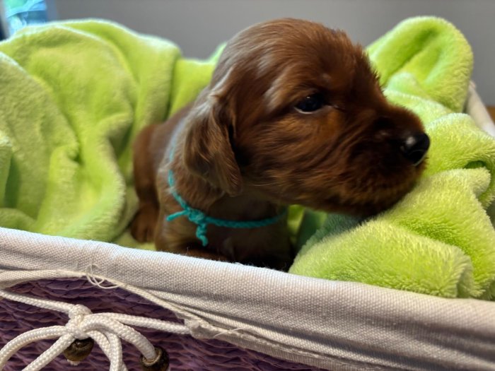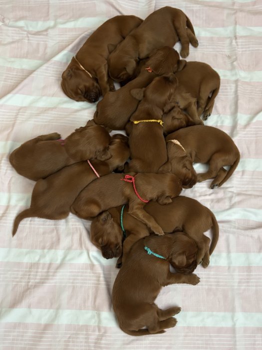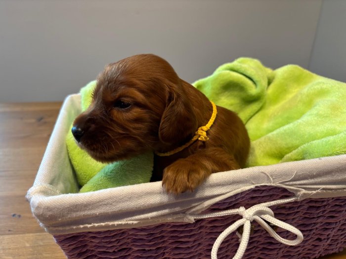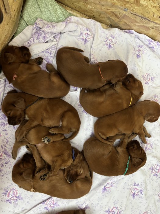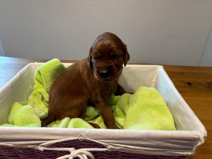 Nabízím krásná zdravá štěňata irského setra s PP z perspektivního spojení s předpoklady pro myslivost i rodinný život. 6 fenek a 5 psů. Oba rodiče jsou skvělí parťáci, vyrovnané povahy, aktivní, přátelští a výborní lovečtí psi.