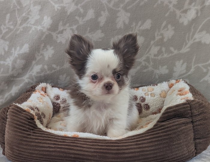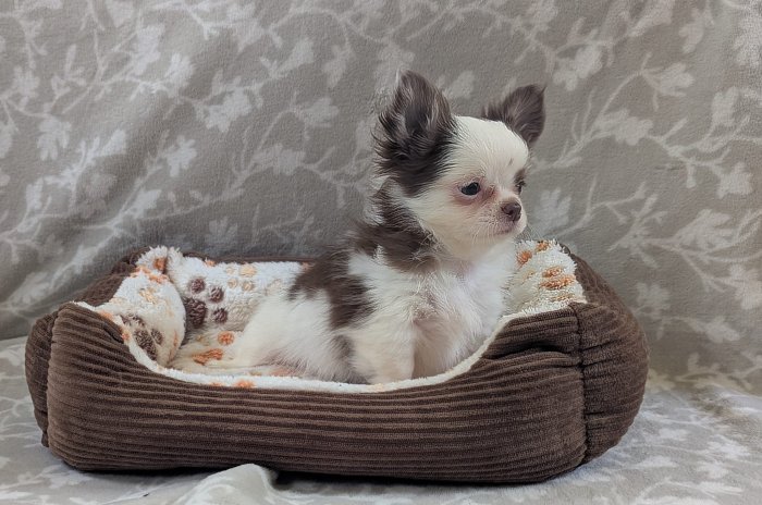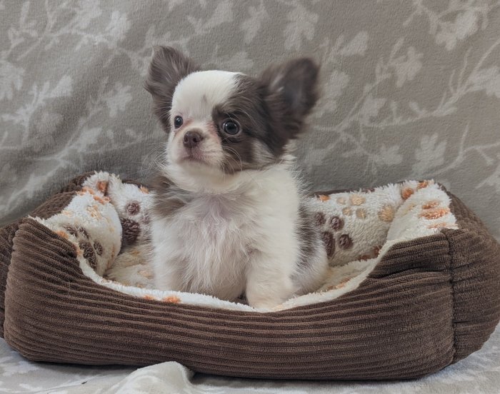 K zadání nabízím krásné štěňátko čivavy dlouhosrsté s průkazem původu FCI. Štěně je zdravé, pravidelně odčervované, očkované, čipované a bude vybaveno pet pasem. Vyrůstá v domácím prostředí, je zvyklé na běžný chod domácnosti a má milou, vyrovnanou povahu.