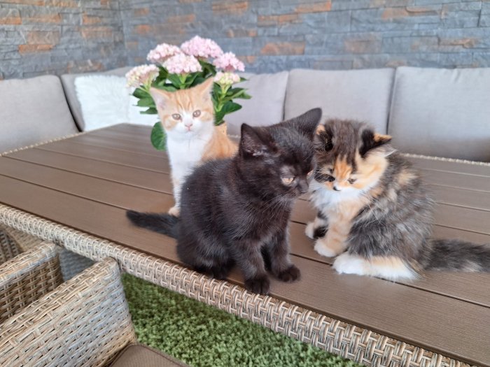 Prodám 3 krásná britská koťátka bez PP, narozena 14.4.25, jsou již k odběru. Jsou 2x očkovaná a odčervená. Maminka s PP je černě-želvovinová bikolor a tatínek je tmavě čokoládový bez PP. Po tatínkovi bude kocourek, který má také tmavě čokoládové zbarvení. Druhý bráška je zrzounek s bílým čumáčkem, bříškem a tlapkami. Třetí člen domácnosti je dlouhosrstá tříbarevná kočička, kde nejvíce převládá tmavá barva v odstínu černohnědé, dále pak zrzavo-bílé. Koťátka jsou hravá a mazlivá zvyklá na děti a běžný ruch domácnosti. Naučena na kočičí WF a škrabadlo. Nemají problém ani se psí ségrou.