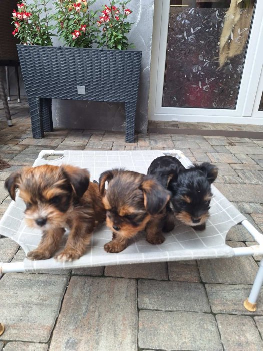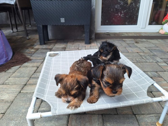 Prodám nádherna štěňata jorkšerskeho teriera, narozena 10.06. 2x odčervená, 2x naočkovana, veterinární prohlídka, zdraví bez vad. V dospělosti kolem 2,5kg. Sou kluci.