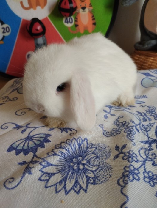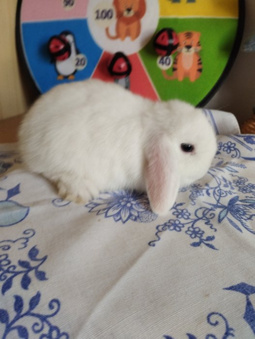 stáří 2 měsíce, kvalitní bílá srst, modré oči, zvykla na mazlení, preventivně přeléčena proti kokcidióze, učena na králičí WC, vhodna na mazlíčka, do dobrých rukou a podmínek, chována doma, k okamžitému odběru v Mostě. Cena samičky 600,- Kč.