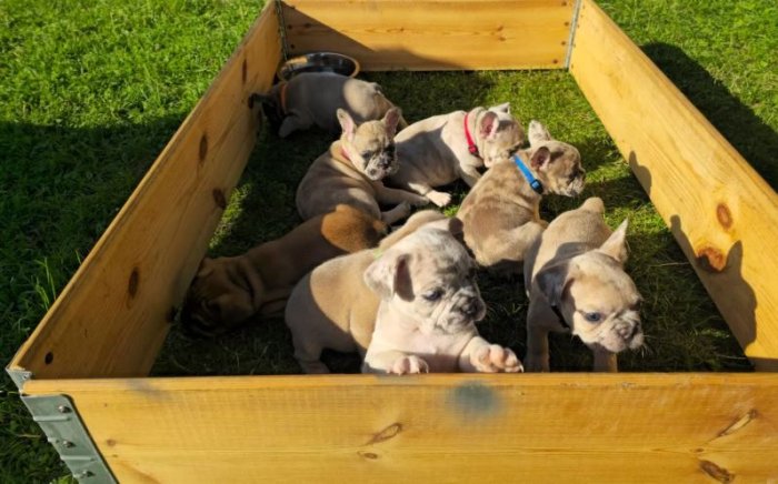 Našich pět milých štěňat se narodilo 25. června. Původně bylo pět štěňat. Naše milovaná fenka bohužel dva dny po porodu zemřela, takže jsme museli štěňata vychovávat výhradně na krmení z lahvičky. Dvě štěňata jsme adoptovali, ale další dvě se krásně vyvíjejí.