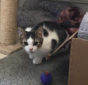 Porthos, kocourek, narozen cca 8/2025, kastrace v dospělosti je podmínkou adopce. Dne 19.11.2025 někdo nechal v krabici tři koťata (kluci) u Zoobutiku ve Schwaigerově...