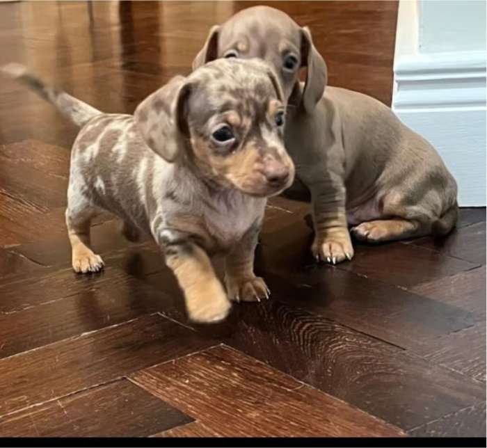 Nabízím štěňátka bez PP, narozená 25.5.2025, 2 pejsky a 1 fenku čokoláda a opálení barvy.