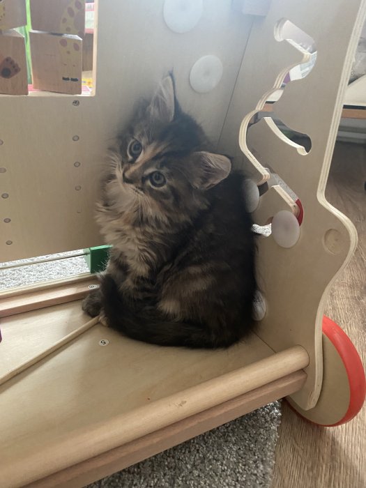 Asi tříměsíční kočička, nyní s námi již velmi opatrně komunikuje, zatím nemá ráda změny, ošetřená proti parazitům, rozvakcinovaná.