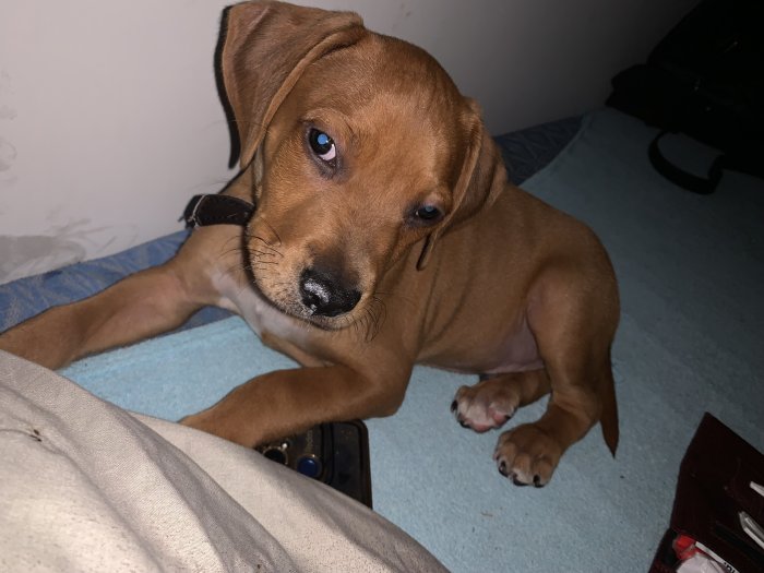 Rocky je kříženec pidbula a ridžbeka po otci a po matce amstaf jsou mu tříměsíce nerodil se 10.5.2025 je třikrát očkován a dvakrát odčervený ma čip . Štěňátko me stalo 8tisic plusvsechny nutná očkováni je hodny ma rad děti a psí kamarády rad si hraje umí si sednout a dat pac vice na tel. 774825191