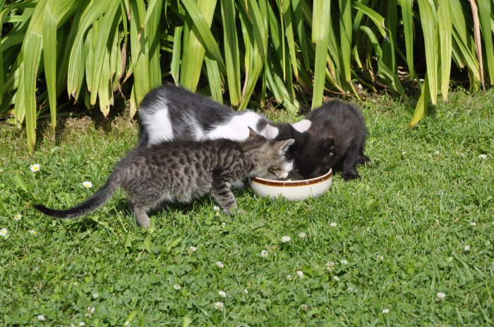 Nabízím tříměsíční koťata od toulavé matky. Kocourek /černobílý / a kočička /žíhaná/ jsou socializovaní, vymazlení,čistotní, odčervení a očkovaní....