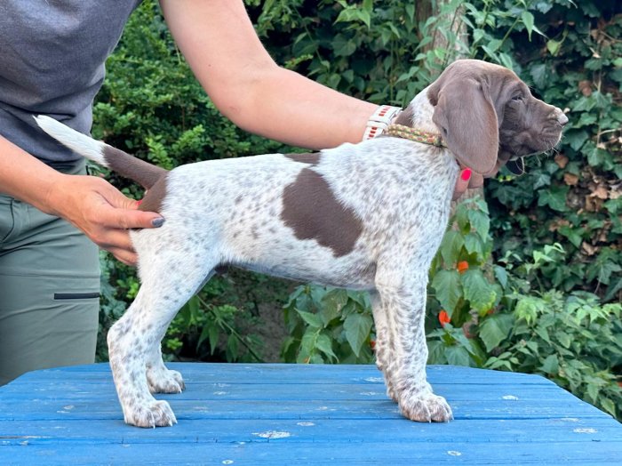 Nabízíme štěňata Německého krátkosrstého ohaře s PP, připravená na nový domov. Vhodná pro myslivost a aktivní životní styl - skvělí společníci pro běh a turistiku.