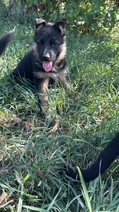 Prodám krásná štěňátka německého ovčáka s PP fenky– černé se znaky. O: výborný, 1.tř. Chovnosti, 5JX6/44, zkoušky: SVV1, BH, IGP1.