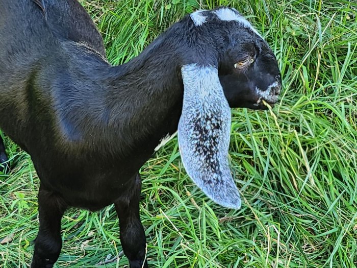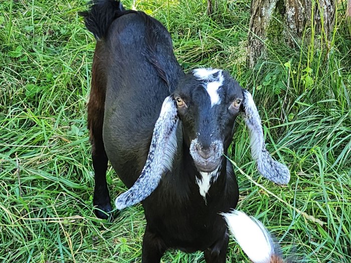 Prodám březnovou Anglonubijskou kozičku linie Wayward. Kozička je zapsaná v plemenné knize. Je z trojčat, geneticky bezrohá. Matka ( linie IGOR, bez PoP ). Nádoj matky 703kg mléka/měřených 240 dnů a stále dojí ( aktuálně cca 3 l/den ), tuk 3,41 bílkovina 3,54. Kozička ponese strakatý gen po obou rodičích. Kozička je očkovaná proti katarální horečce a 2*proti klostridiím ( Covexin 10 ),odčervená. Je registrovaná. Předpoklad velmi dobré dojivosti a početných vrhů. Cena 4000kč (výměna za pěkný oves ve stejné hodnotě možná ). Její dcery budou mít nárok na dotace 3500kč/ks. První kontakt pouze mailem, platný tel. na web po špatných zkušenostech již nedávám. Foto je z léta.