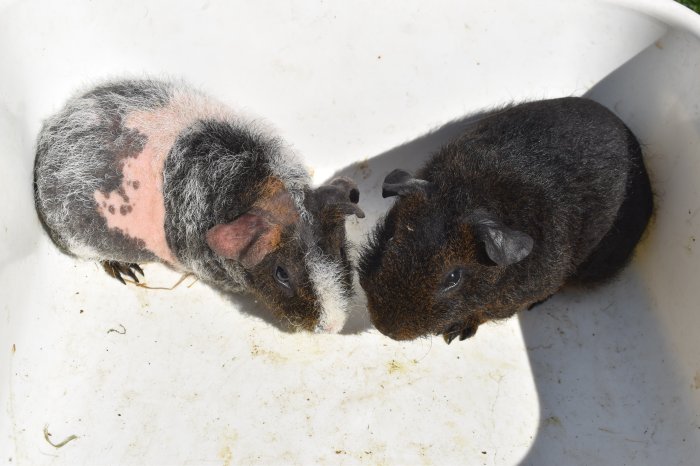 Nový domov vyhlíží dvě mladé skinny samičky-drátěnky.Dalmatin a zlatá aguti.Gerbera a Gertruda.Ideálně společně. Mají pár chloupků navíc. Jen do dobrých podmínek!-velké ubikace a s přísunem čerstvé trávy-nejlépe i výběhem na zahrádce. Cena za obě 1400kč