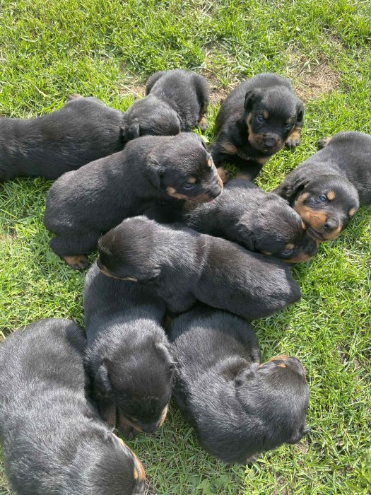 Nabízím k rezervaci štěnátka rotvajlerú,čistokrevná bez pp,vykupirované ocásky,7pejsků a 3 fenky,narozené 23.8,do nových domovů půjdou naočkovaná a načipovaná,odběr po půlce října.