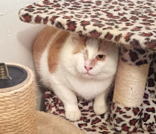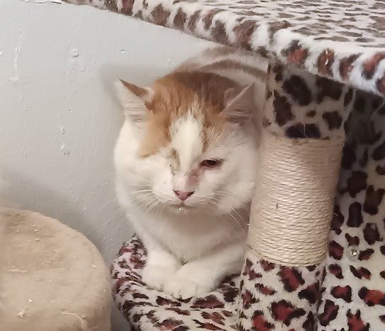 Dne 22. 7. 2025 byl nalezen dospělý kocour v Dolním Skrýchově se zraněným okem. Při příjmu se zjistilo, že jeho pravé oko již není a musela se chirurgicky odstranit poničená tkáň a celé to zrevidovat a uzavřít.