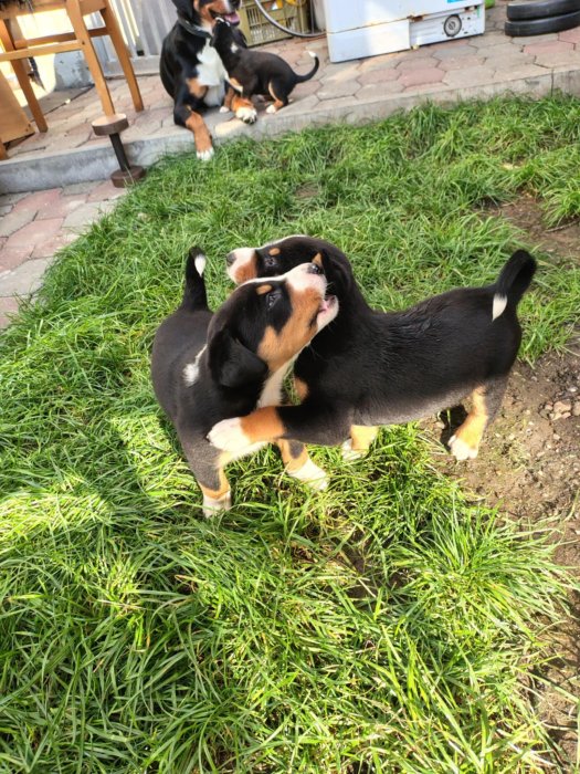 Prodám štěňata, 2 fenky a 2 pejsci,původ Apenzellský salašnický,Narozena 9.8. 25. Odčervená, očkovaná. Odběr možný od 27.9.25. Cena dohodou. Pro zájem pište SZ. Ozvu se hned jak to bude možné. Děkuji za pochopení (jsem v práci 🥹)