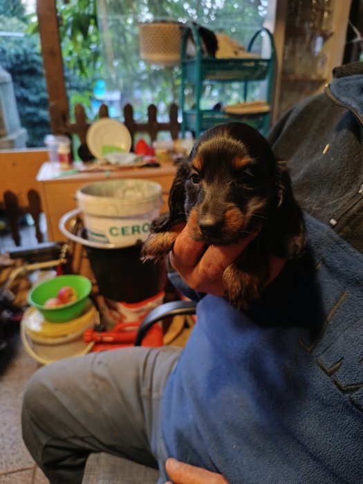 Prodám štěňata dlouhosrstých trpasličích jezevčíků pouze psi, černí s pálením. Čistokrevná bez PP. Možno vidět oba rodiče. Čipovaná, očkovaná, odčervená. K odberu od 10.10.