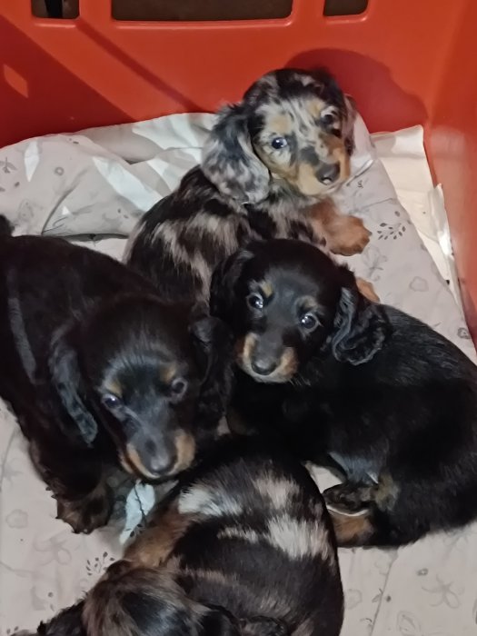 Prodám nádherná štěňátka jezevčíků, matka čistokrevný jezevčík černý s pálením, otec kříženec jezevčíka. Cena 6000, -Kč, Odběr možný ihned. štěňátka...