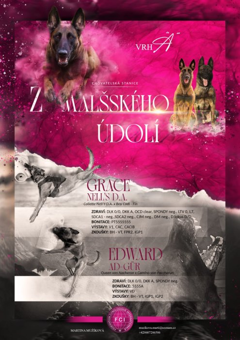 Štěnda z tohoto pracovního spojení mají předpoklady vyrovnaných povah a výborných vlastností pro všechny psí sporty.