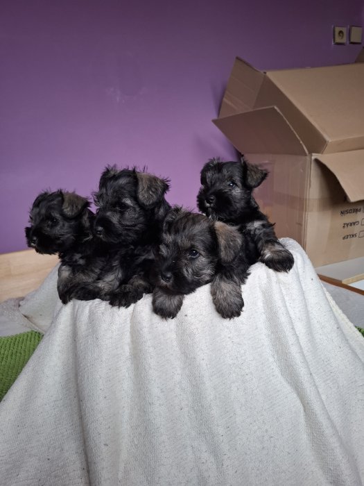 Prodám krásná štěňátka knírače ( 3pejsci a fenka) Štěňátka jsou po kvalitních rodičích s PP. Jsou dčervena, očkovaná a čipovana. Odběr možný ihned