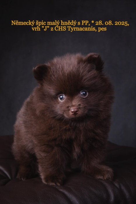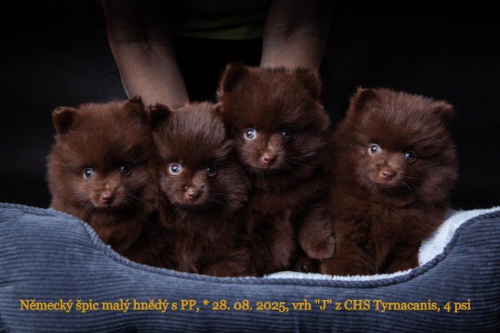 Chovatelská stanica TYRNACANIS ponúka na predaj šteniatka malého hnědého špica – psíkov s PP FCI po výstavne úspěšných rodičoch. Šteniatka sú riadne očkované, čipované, s EU PASSPORTom a kúpnou zmluvou. Odber možný v novembri, na Slovensku v Trnavě, po dohode možno aj v Českej republike. Prosím len seriózny záujem. Cena dohodou.