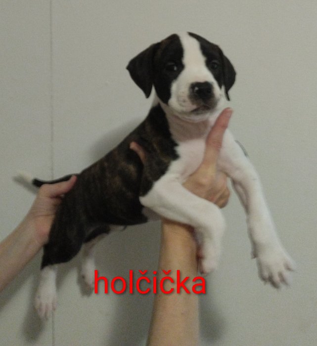 Prodám štěňata amerického stafordšírský teriér bez pp nar 28.8 štěňata vyrůstají doma s dětmi a jsou zvyklá na chod domácnosti,pomalu si zvykají na zahradu jsou očkovaná odčervená s čipem.maminka váha 42 kg k vidění u nás, táta pouze foto.Pro více informací volejte 604193327