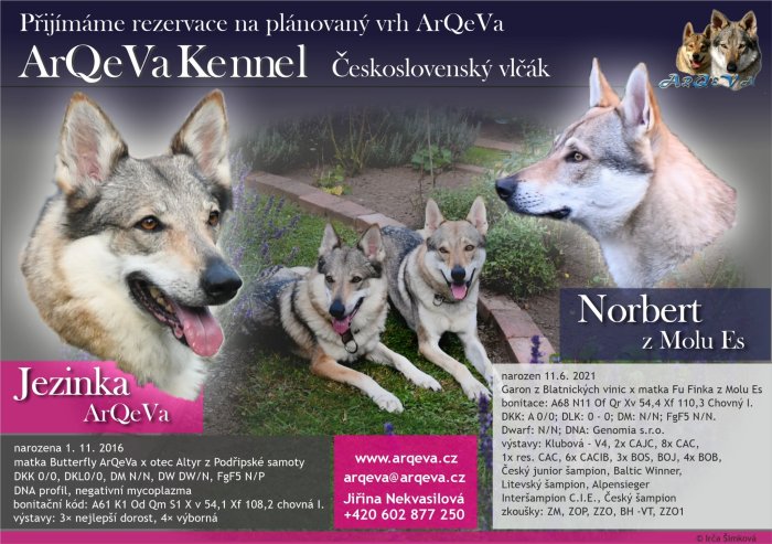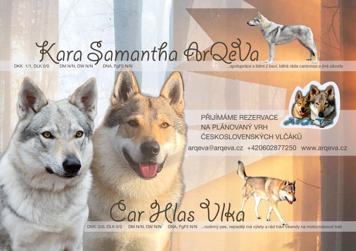 Přijímáme rezervace na plánované "Mikulášské "vrhy chs ArQeVa. Nakryté jsou feny Jezinka a Kara Samantha. Protože to budou poslední vrhy obou fen, vybírala jsem psy "srdcem".