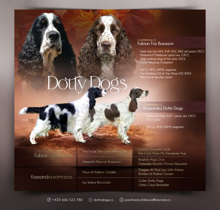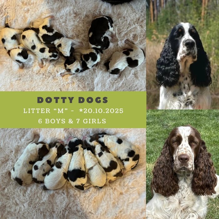 Chovatelská stanice Dotty Dogs (FCI) zadá štěňata anglického špringršpaněla. Narození 20.10.2025. Hledáme aktivní majitele, začínající kynology, myslivce, sportovce, kteří ocení temperament tohoto krásného plemene! K zadání pejsek i fenka.