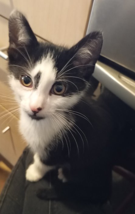 Asi tříměsíční kočička, nyní s námi již velmi opatrně komunikuje, zatím nemá ráda změny, ošetřená proti parazitům, rozvakcinovaná.