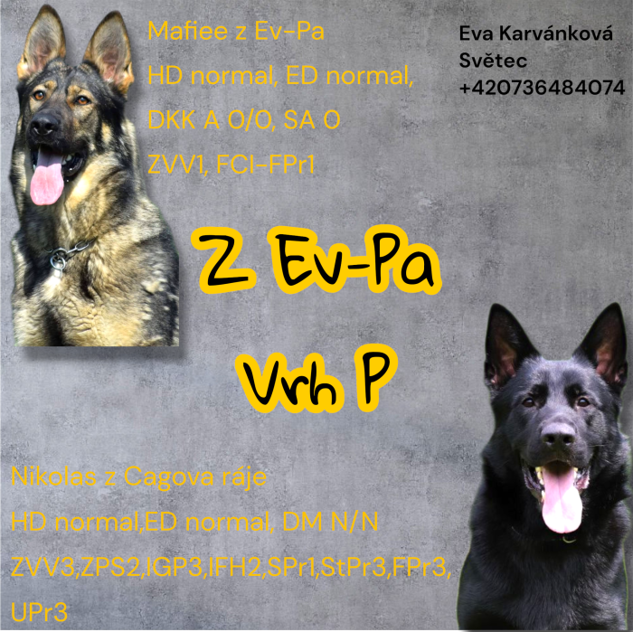 Chovná stanice ŠAVEMA nabízí štěňata Německého ovčáka s PP po kvalitních rodičích. Otec Chilli z Kadaňského podhradí 5JX1/P, matka Era Hartis Bohemia 5JX1/P, oba...