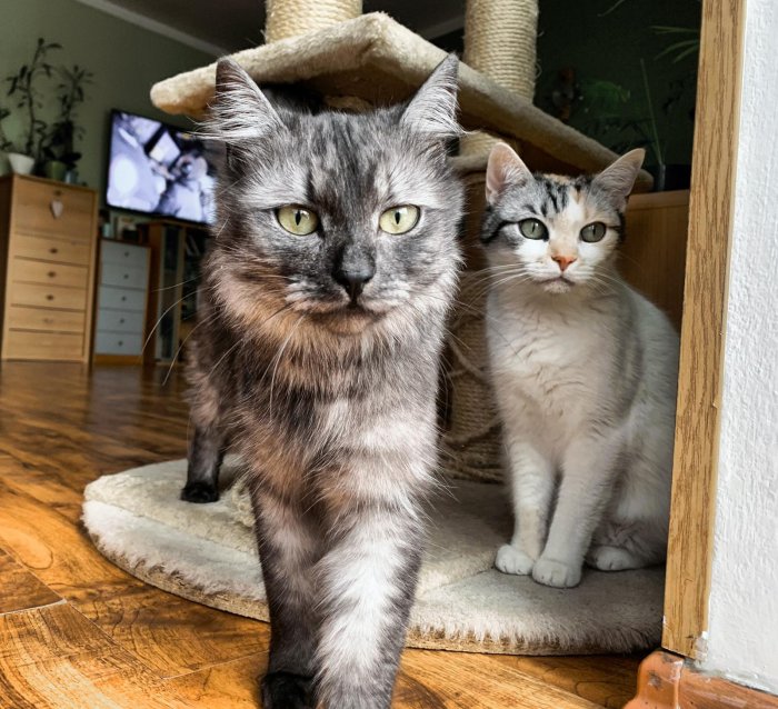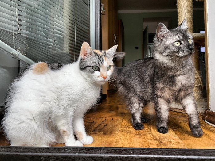 Hledám láskyplný domov pro dvě kočky. Jsou zdravé, čistotné a zvyklé na život v bytě. Nejraději bych je daroval/a společně, ale lze se domluvit i zvlášť. Jen do opravdu dobrých a zodpovědných rukou.