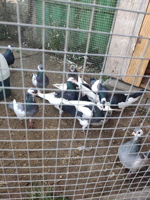 Prodám holuby Moravský pštros modrý rovný 2,2. Pražský rejdič krátkozobý plavý žlutopruhý a červenopruhý 4,4
