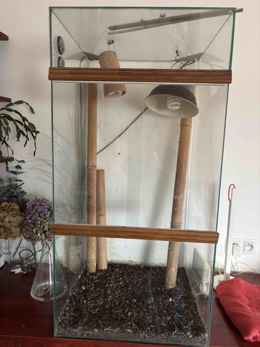 Skleněné terárium výšky 100 cm, včetně UV a infra lampy.