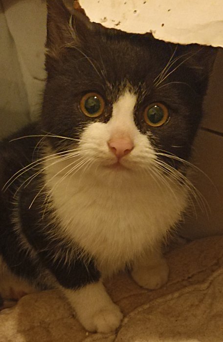 Asi tříměsíční kocourek, odchycený jako extrémně divoké kotě, aktuálně s trochou opatrnosti komunikuje s lidmi, ošetřený proti parazitům, rozvakcinovaný. Tel.: 777214680