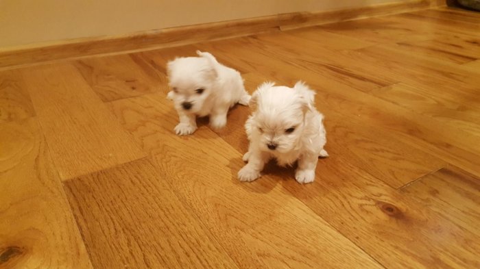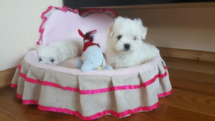 Oba jsou krásnými zástupci plemene, se sněhově bílou srstí, bez skvrn od slz a s uhlově černou pigmentací. Naše štěňata jsou dobře známá pro své krásné malé obličejíčky, drobné krátké nosíky a velké výrazné oči. To jim dává tolik vyhledávané a žádané korejské vlastnosti.