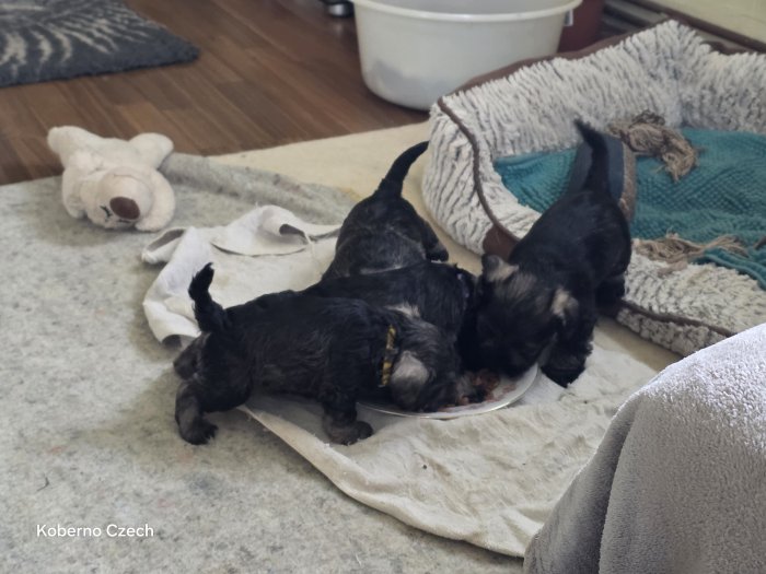 Chovatelská stanice Koberno Czech nabízí k prodeji štěňátka knírače maleho pepř a sůl s PP. Matka Bona Koberno Czech, otec Xavier z Větrova. Oba rodiče výstavně úspěšní, zdravotní testy,skvělých povah.Štěňátka mají výstavní předpoklady, budou skvělými kamarády. K odběru budou po 12.12.2025.